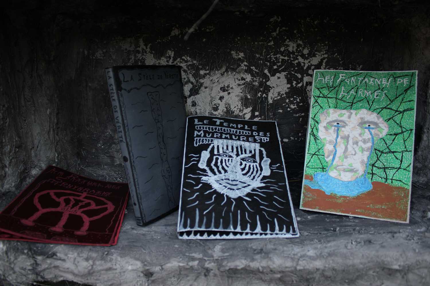 Des manuscrits sont disposés dans une petite bibliothèque et permettent aux visiteurs de s'informer sur les lieux.
