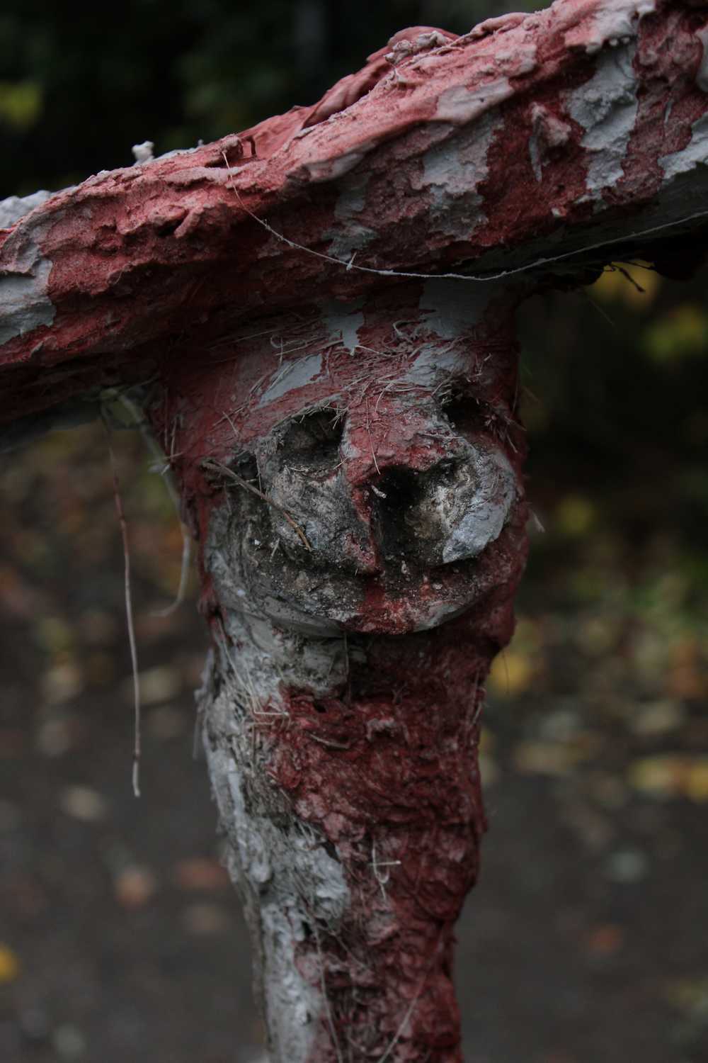 Un crâne d'homme et un crâne d'animal, esprits protecteurs, veillent en silence sur les lieux.
