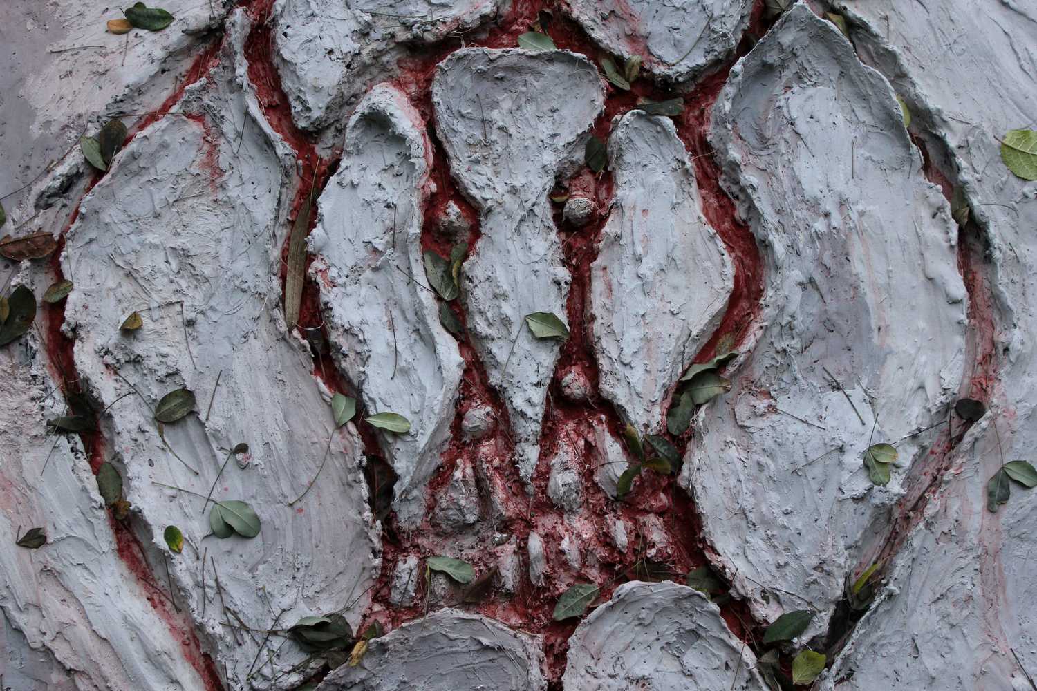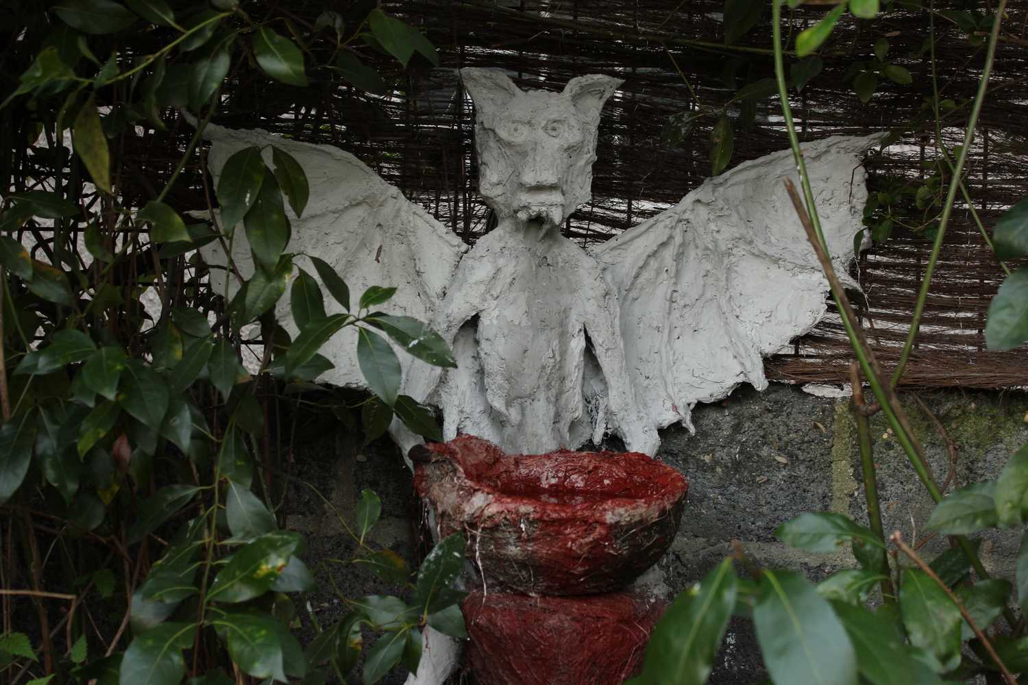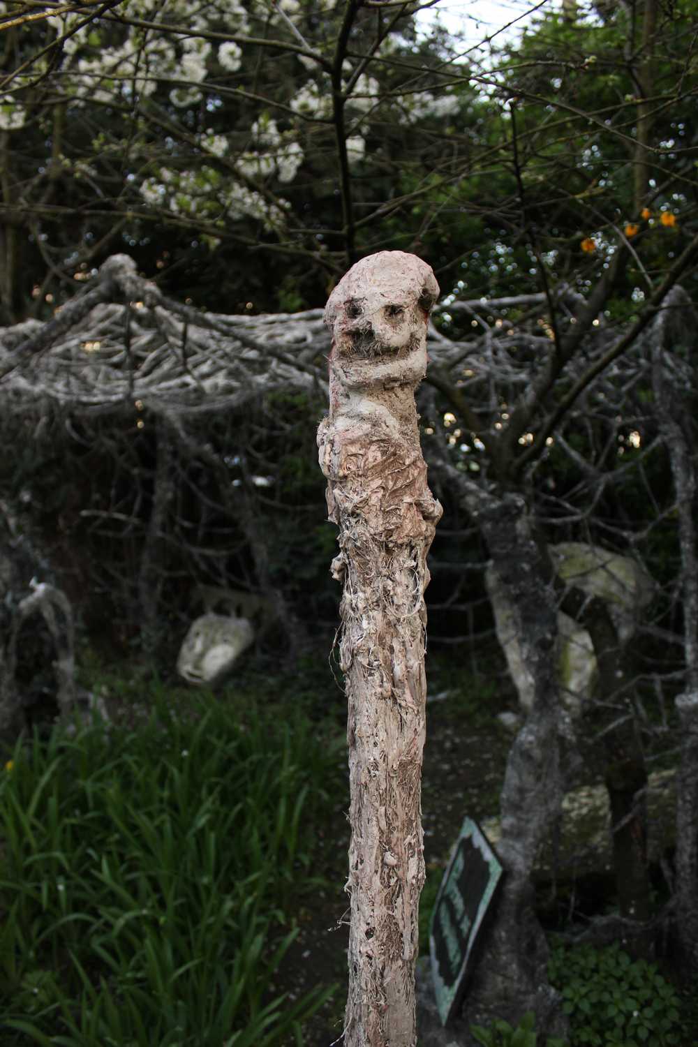 Le temple des murmures est un aménagement d'extérieur réalisé pour la Maison d'art Pluralium. Des structures et sculptures de plâtre, bois et filasse ont été réalisées pour s'inscrire dans le paysage et se mêler à la nature.